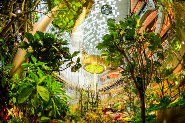 光環(huán)購(gòu)物公園內(nèi)有42米高、橫跨7層的室內(nèi)植物園“沐光森林”,