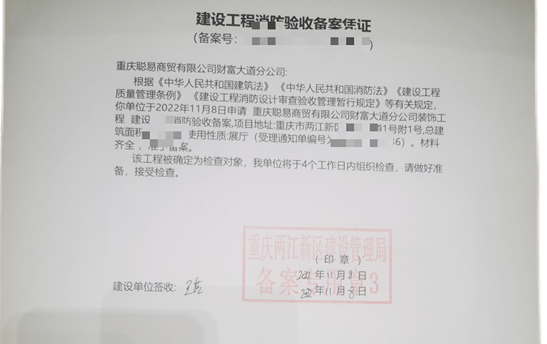 重慶聰易商貿(mào)有限公司消防備案憑證: